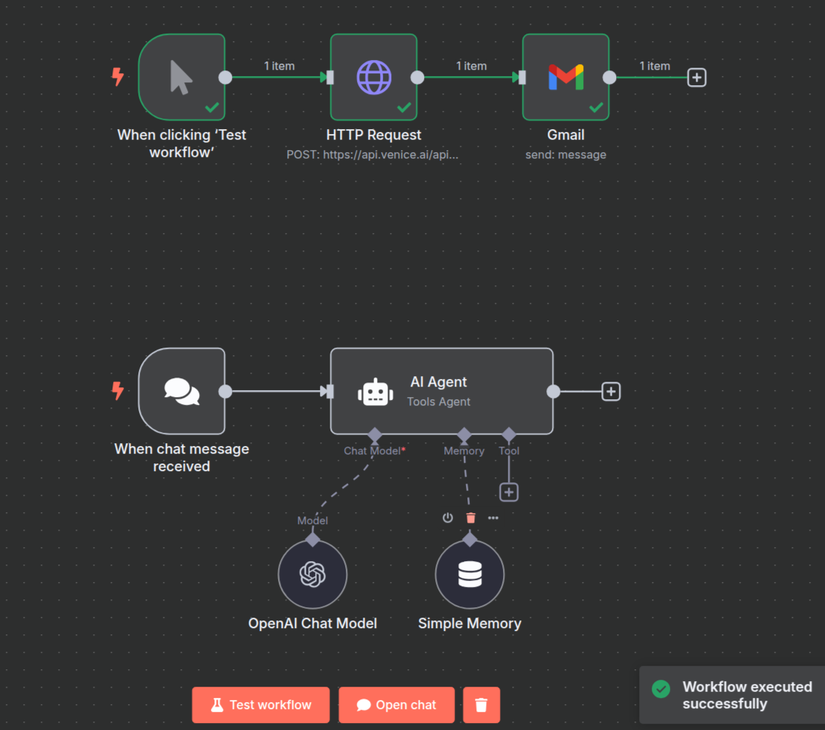 Scalable Automation: By combining n8n's extensive integration library with Venice's API, organizations can scale their operations efficiently while maintaining control over their data. This scalability supports growth and adaptability in dynamic business environments.