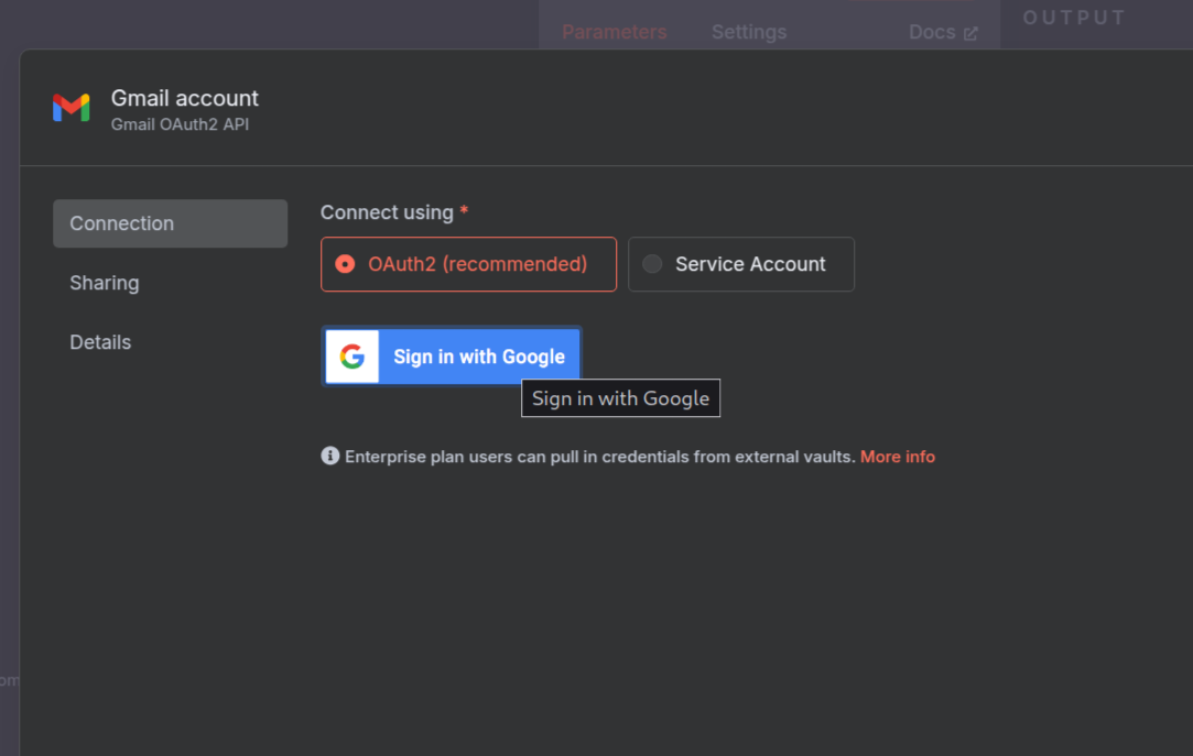 To create a new credential for using your Gmail account, follow these steps: