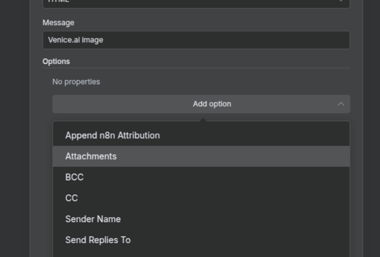 To attach the generated image to the email, click on the "Add Option" button.